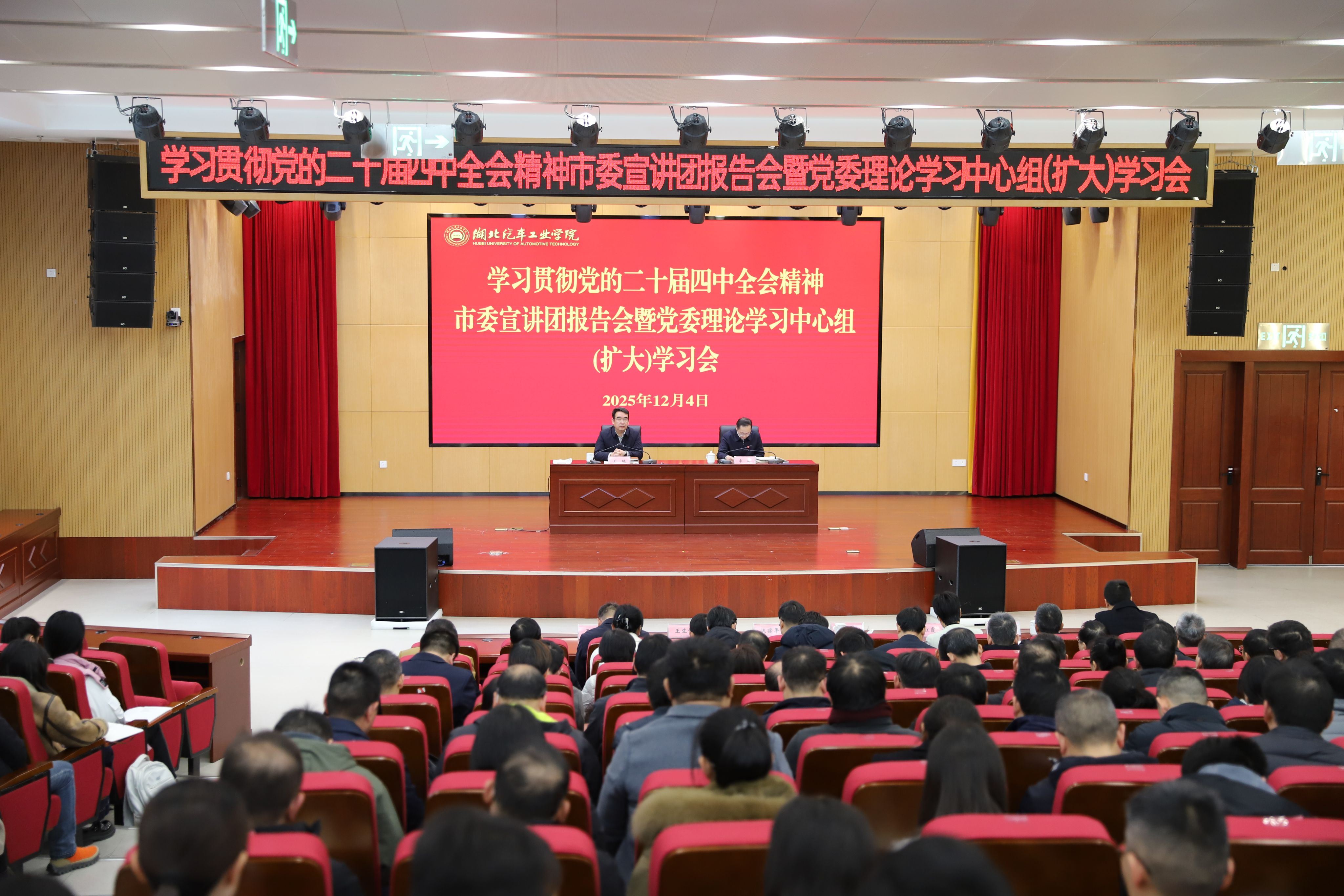 市委宣讲团成员、校宣讲团团长、党委书记王晓作党的二十届四中全会精神专题宣讲报告。王晓从“深刻把握党的二十届四中全会的核心要义与理论精髓”“深刻理解学校践行全会精神的坚实基础与独特优势”“深刻谋划全校师生贯彻全会精神的实践路径与具体举措”三个方面,对全会精神作了深刻、生动的辅导报告。